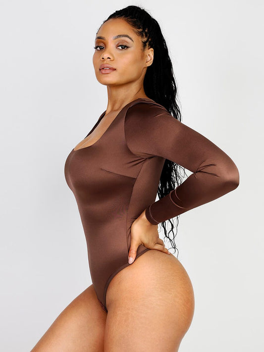 Square Neck Long Sleeve Sleek Thong Bodysuit